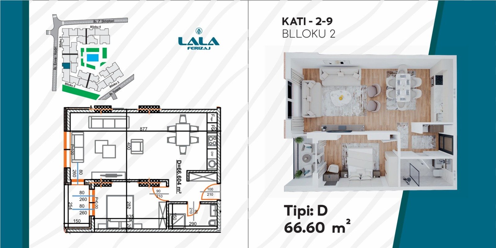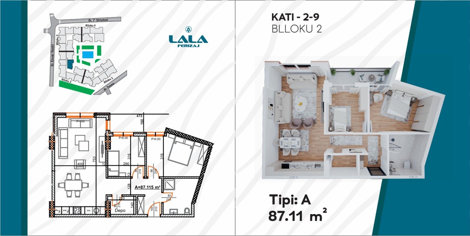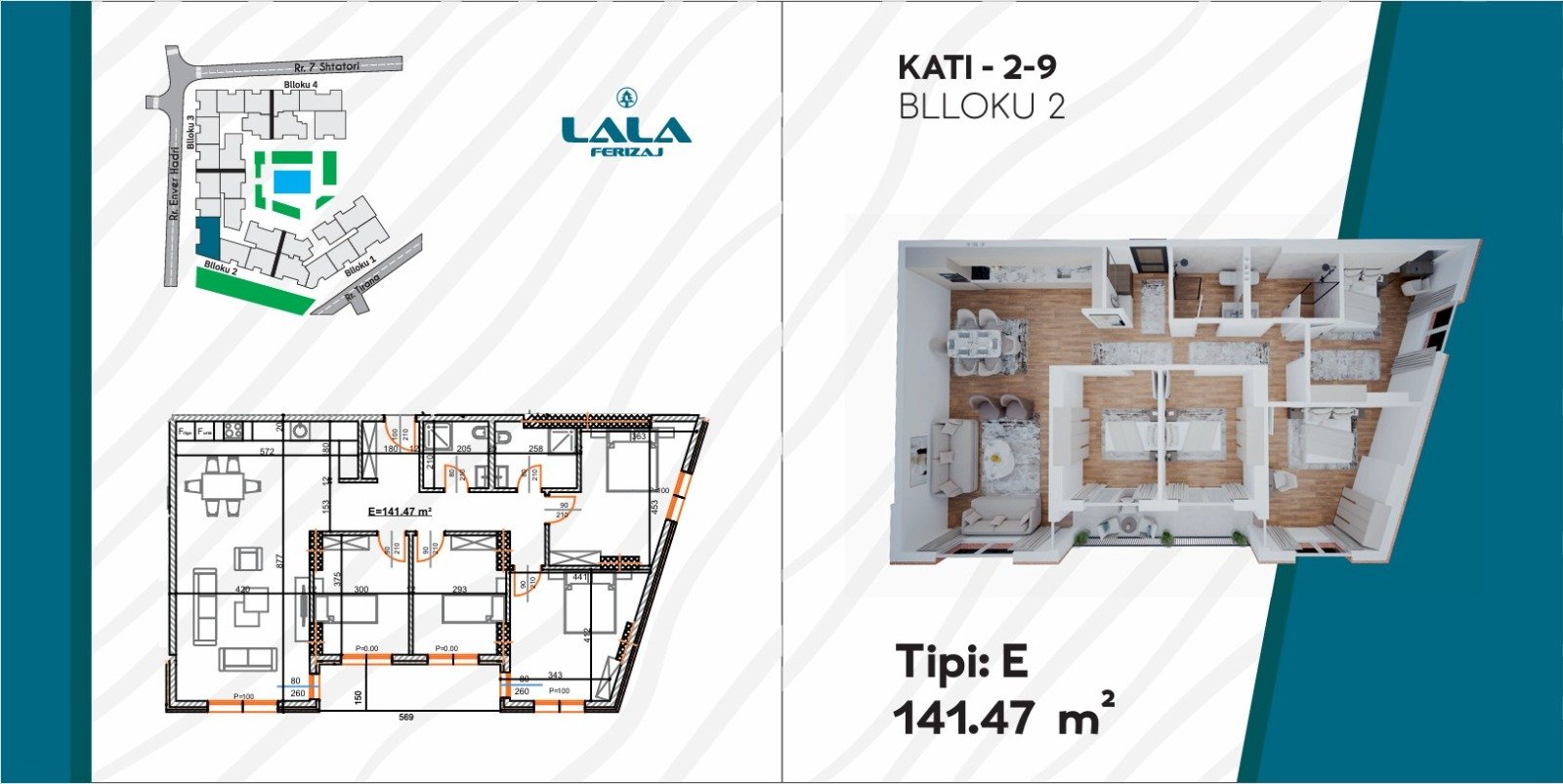 Projekti rezidencial “Lala Ferizaj” përfshin mbi katër blloqe ndërtimi me gjithsej 37 banesa, duke ofruar ndërtim modern, cilësi të lartë dhe komoditet maksimal. Ky projekt është ideal për një jetesë të qetë, në një komunitet të përzgjedhur dhe ambient të mirëorganizuar.